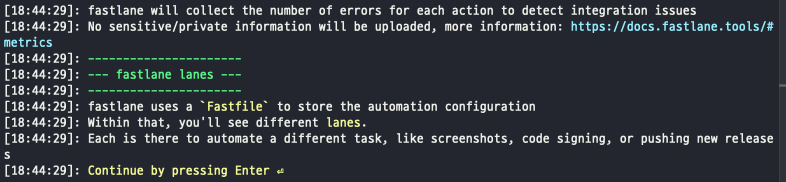 fastlane으로 자동화 작업 설정을 'Fastfile'에서 하고 여러 lane을 정의 할 수 있다고 얘기 해준다.