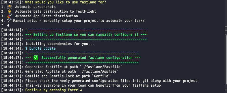 fastlane으로 뭘 하려는지 1~4번 까지 선택지를 준다.
