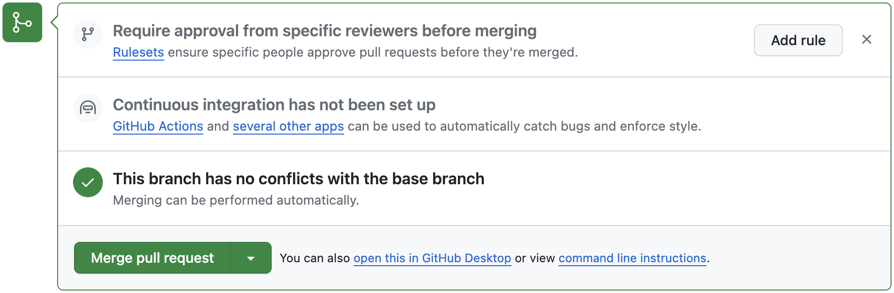 pull request와 merge를 할 수 있도록 알림바가 생긴다.